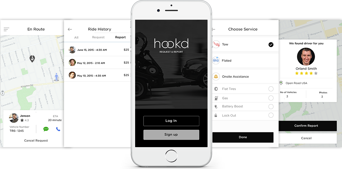 Hookd is an app that is targeted to serve the needs of users looking for towing services either for themselves or to report an accident. The app endeavors to connect tow drivers with the users by acting as a hub between the two. Hookd already had an app but the client wanted to revamp the working and aesthetics of the app to suit the dynamics of the revolutionized digital world. The old app fell short in providing a smooth & seamless user experience to both the tow truck drivers and the users & lagged in core functionalities.