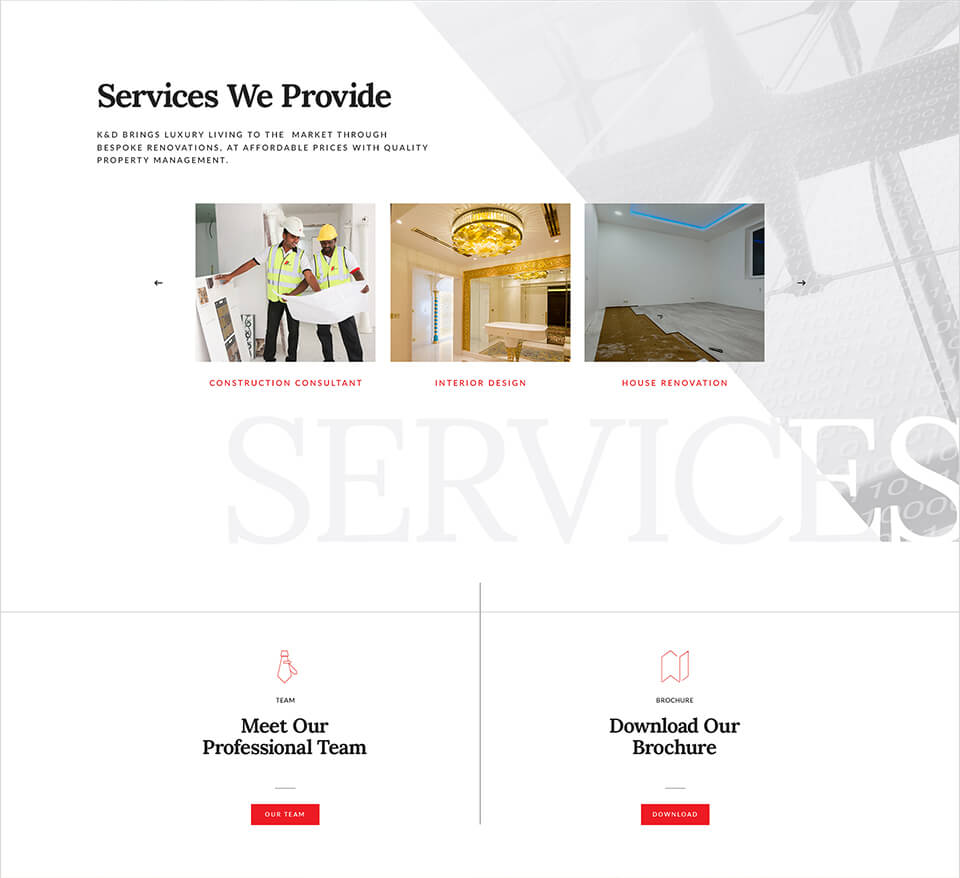 We created their site to have strong visual organization so that their projects could be deservingly showcased in a beautiful setting. Their homepage highlights their main services, while also providing a place for pictures of their breathtaking renovation projects.