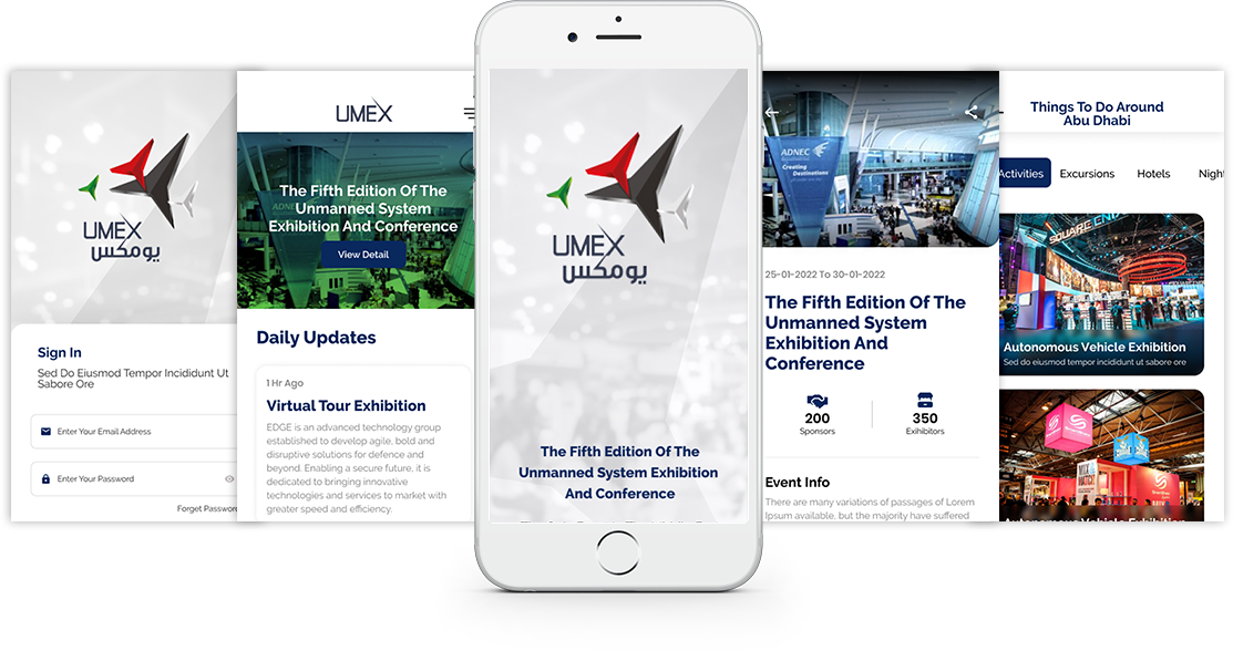 - Registration for exhibitions and events such as UMEX and ISNR, through the app. Users can also view the list of the on-Site and off-Site hotels and restaurants, and request for booking with a specific date and time.